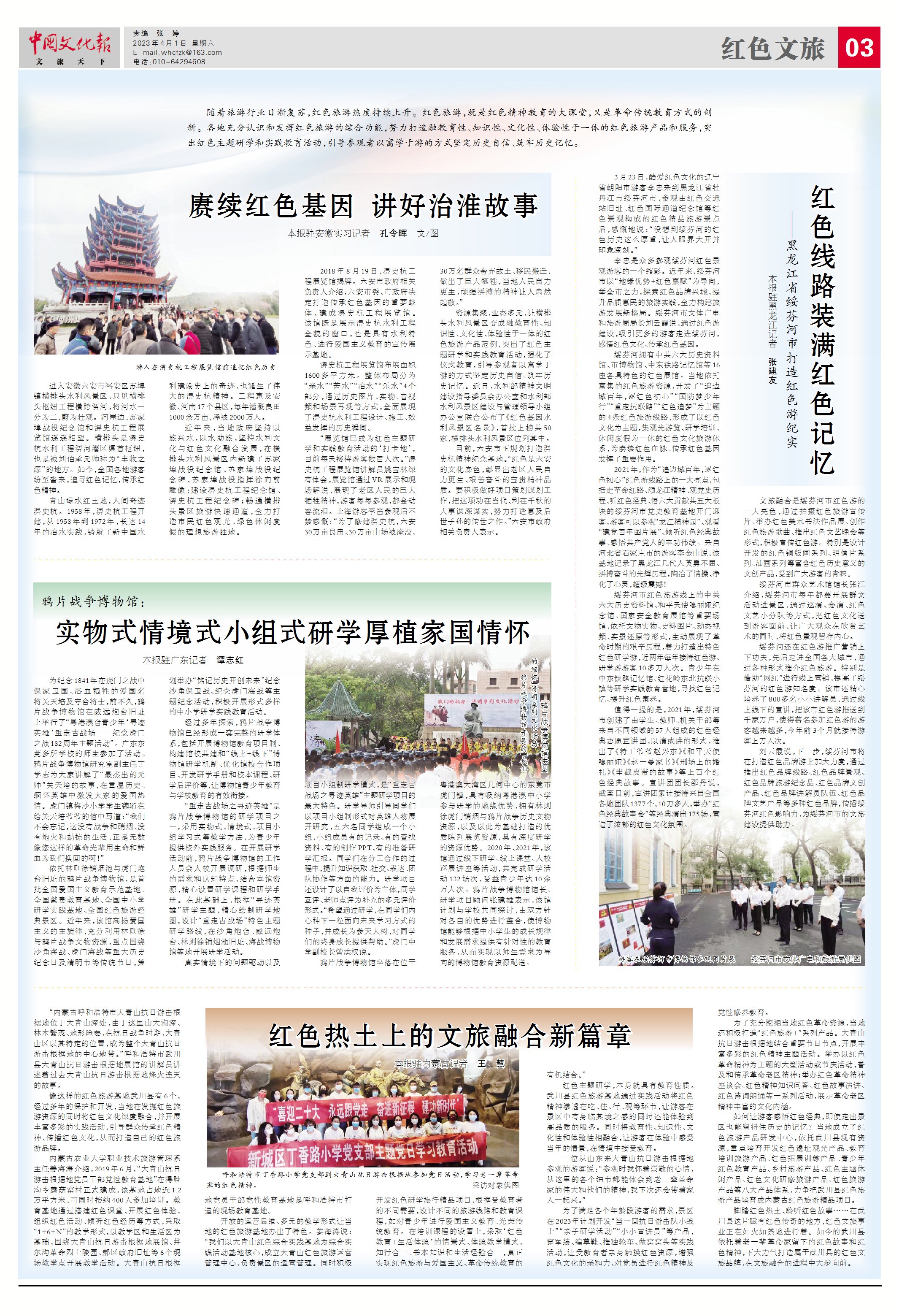 随着旅游行业日渐复苏,红色旅游热度持续上升。红色旅游,既是红色精神教育的大课堂,又是革命传统教育方式的创新。各地充分认识和发挥红色旅游的综合功能,努力打造融教育性、知识性、文化性、体验性于一体的红色旅游产品和服务,突出红色主题研学和实践教育活动,引导参观者以寓学于游的方式坚定历史自信、筑牢历史记忆。