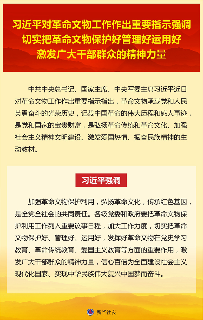 习近平对革命文物工作作出重要指示强调 切实把革命文物保护好管理好运用好 激发广大干部群众的精神力量