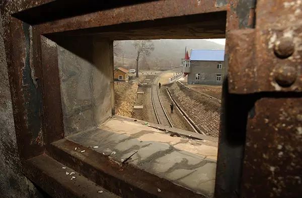 透过侵华日军碉堡遗迹的铁窗,一条铁路在兴安盟境内蜿蜒而去。 新华社记者 张领摄