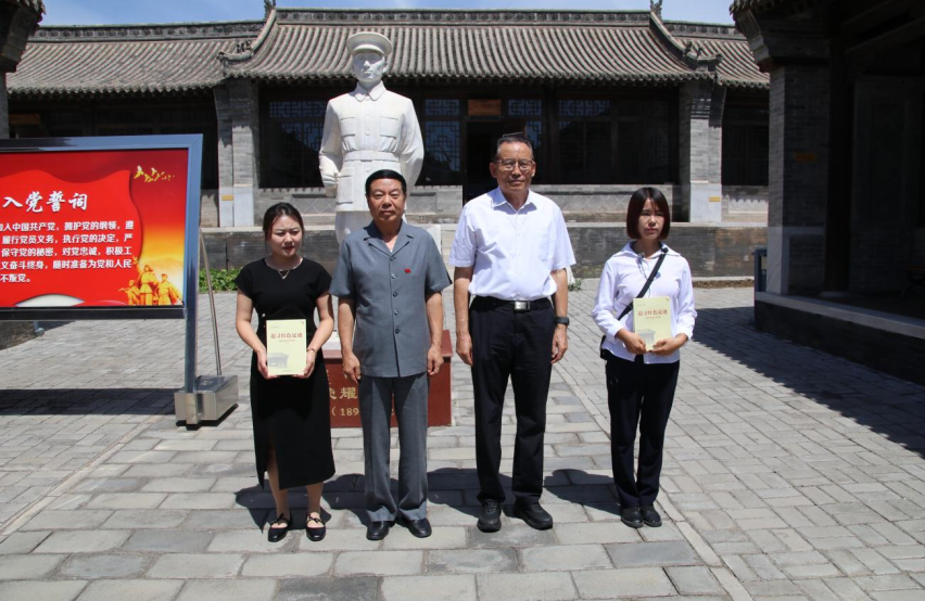 活动同期,老促会调研组对荣耀先烈士故居围绕文物保护现状及文旅融合发展等情况进行考察,并捐赠《追寻红色足迹——内蒙古革命历史故事》。荣耀先(1896~1928),中华著名烈士,中国西部最早的蒙古族共产党员,内蒙古革命运动的先驱。荣耀先烈士故居是自治区级重点文物保护单位、呼和浩特市爱国主义教育基地。
