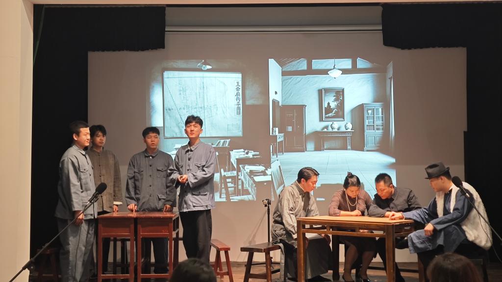 游客在五一会址观看沉浸式情景短剧《五一大会》。(包宝音德力格尔 摄)