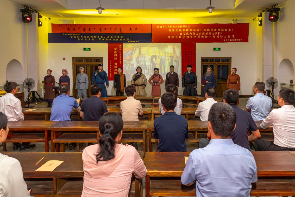 红色情景剧《曙光初照》在内蒙古民族解放纪念馆演出。(乌兰 摄)